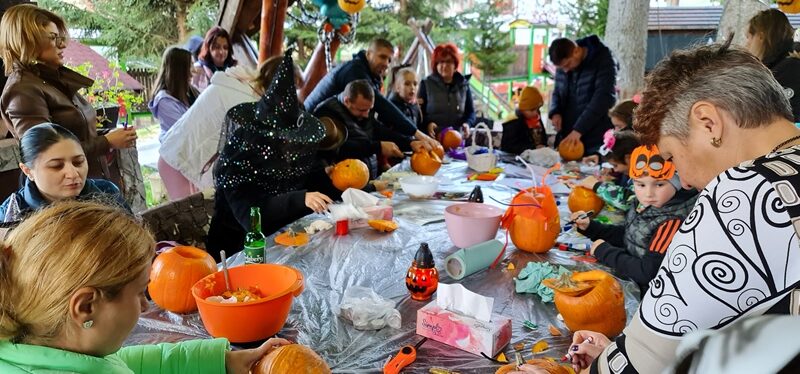 Sejururile de 3 zile, cu demipensiune, se incheie cu o seara festiva, cu foc de tabara, in care copiii se costumeaza pentru a alunga spiritele rele, in timp ce parintii sculpteaza bostanii simpatici.